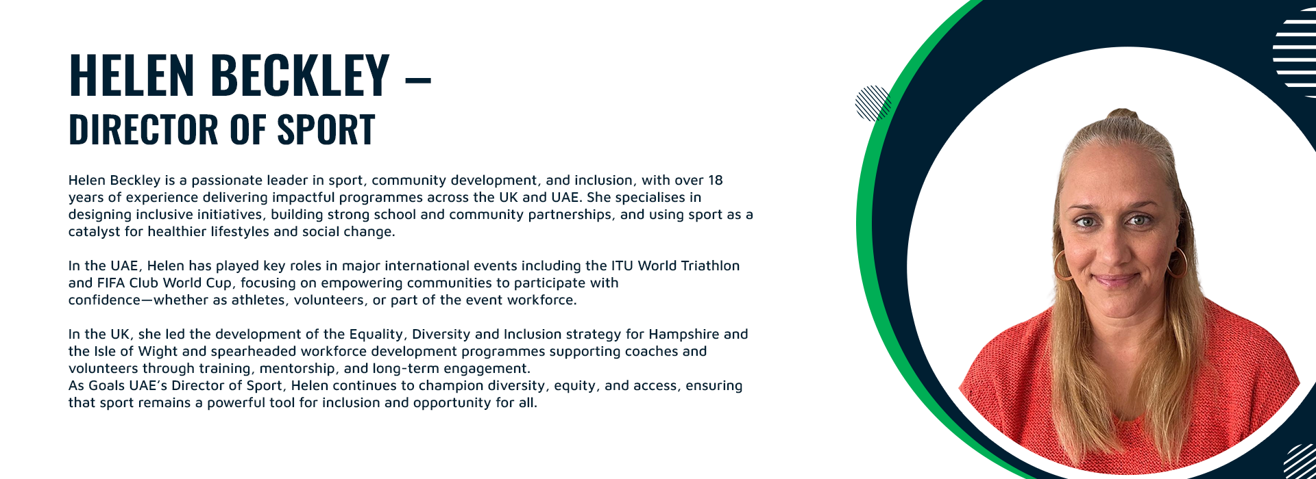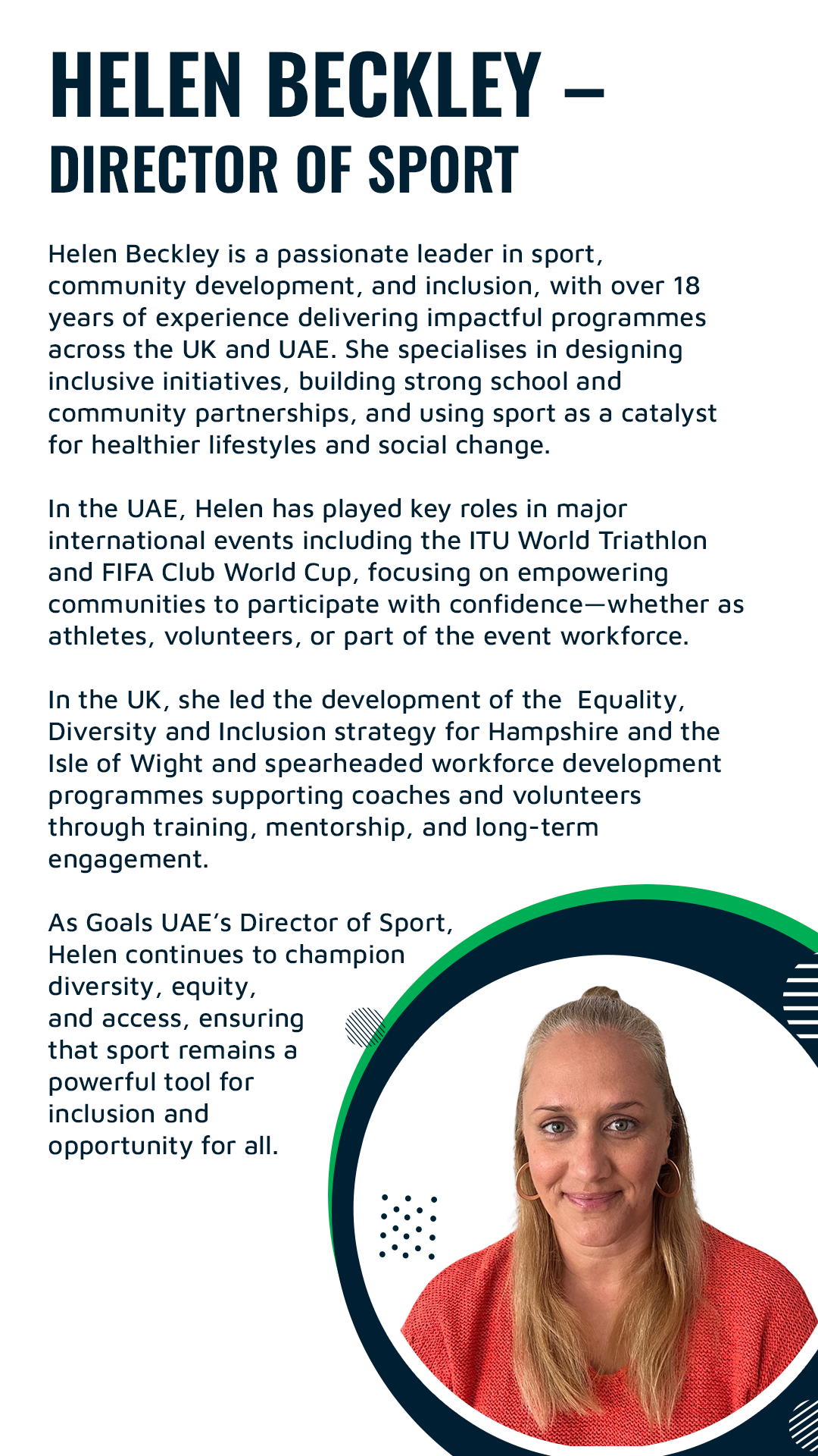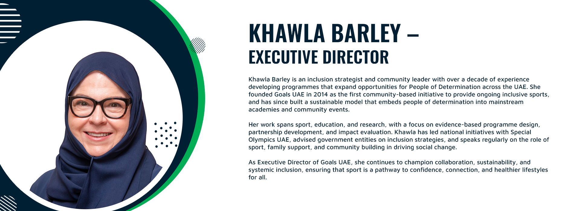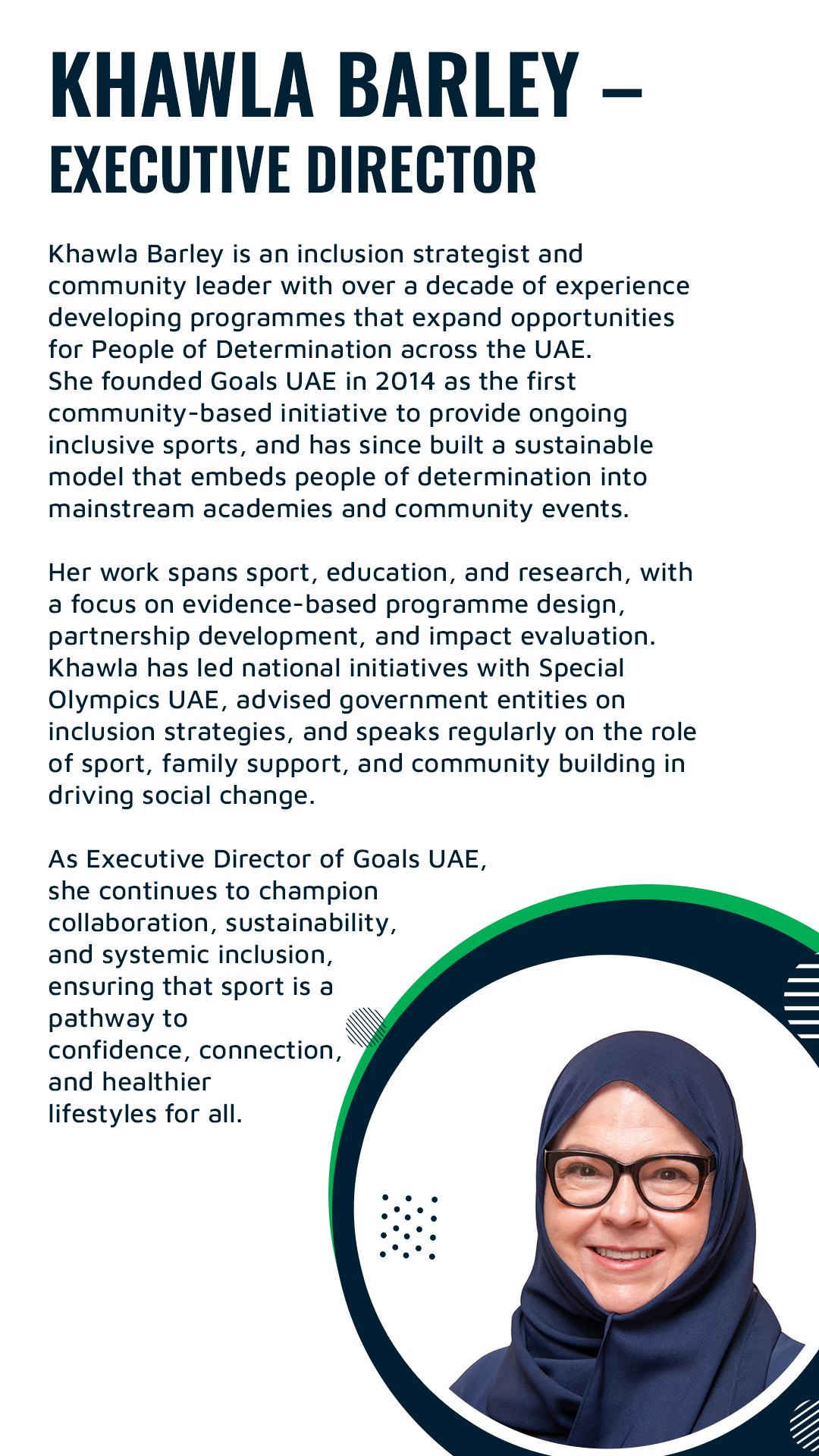 Goals UAE is a community-driven social enterprise providing inclusive sports training for People of Determination. Founded in 2014 and relaunched in 2024, we partner with leading sports academies, certified coaches, and student volunteers to deliver safe, engaging, and developmentally appropriate sessions in football, swimming, cycling, and beyond. Our dual-track model offers free weekly training while supporting sustainable, fee-based programs that embed inclusion within the wider sports industry. Through partnerships, coach training, and ongoing family engagement, we transform sports into a platform for confidence, connection, and lifelong participation—building a UAE where inclusion is not the exception, but the standard.